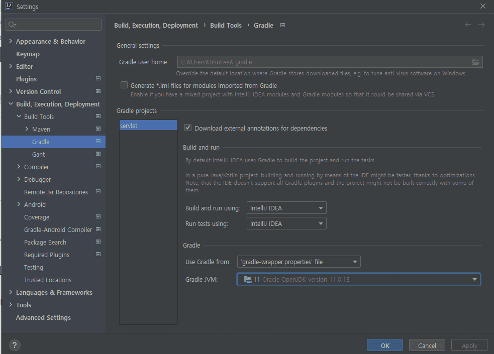 setting에서 Gradle JVM까지 버전 11으로 잘 설정했습니다.