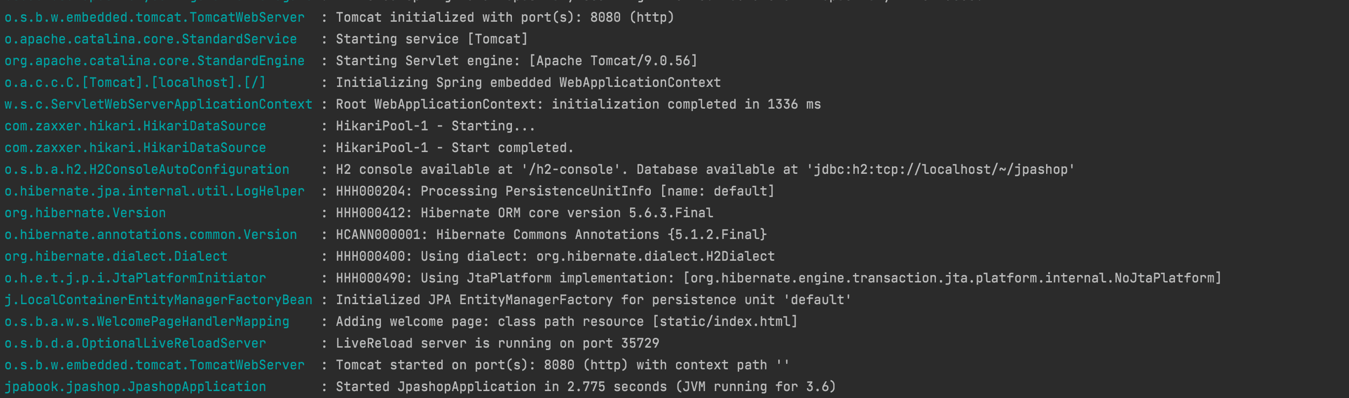 url: jdbc:h2:tcp://localhost/~/jpashop