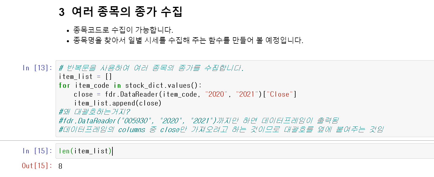 질문 주신 len 은 종목의 갯수에 따라 list 에 값이 들어가서 이 때 len 의 길이는 종목의 수이며,