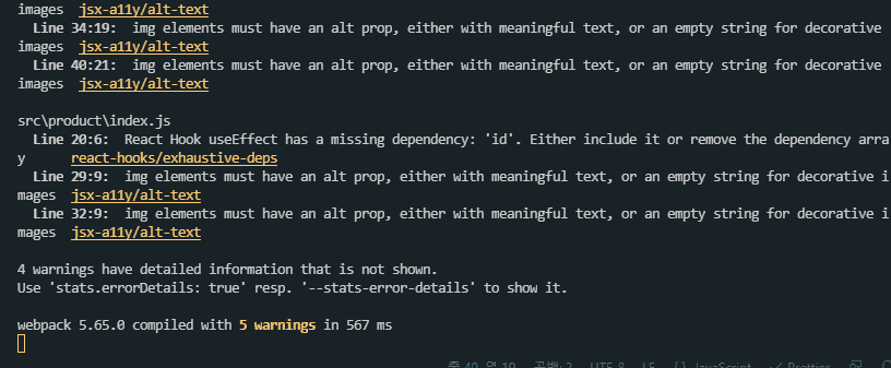 터미널 창 캡처인데요, 파일 경로가 뜨는 게 아니라 위처럼 커서가 멈춘 채로 아무것도 입력이 안 되는 상태가 반복됩니다. 터미널 종료하고 다시 키면 다시 입력할 수 있는 파일 경로가 떠서, 계속 종료했다가 실행했다 하면서 따라가고는 있는데, npm start 한번 실행할 때마다 다시 위처럼 돼서 번거롭네요 ㅠㅠ 원래 이렇게 되는 게 맞는 건가요..? 단축키라든가 제가 놓친 게 있을까요