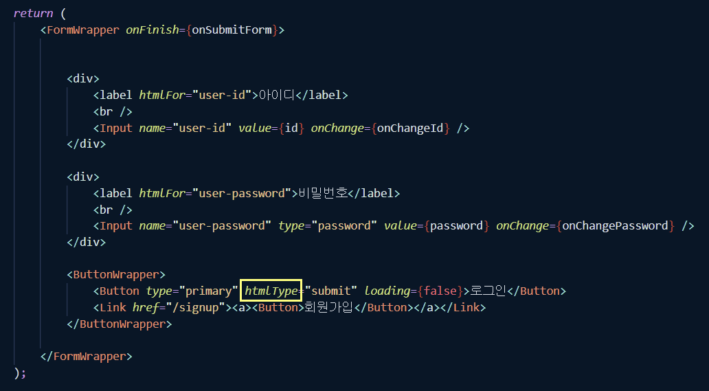 이 부분을 htmlFor로 작성했었네요.. htmlType으로 다시 바꿔주니 작동 됩니다! 감사합니다. 콘솔 확인 제대로 해야겠네요ㅜㅜ