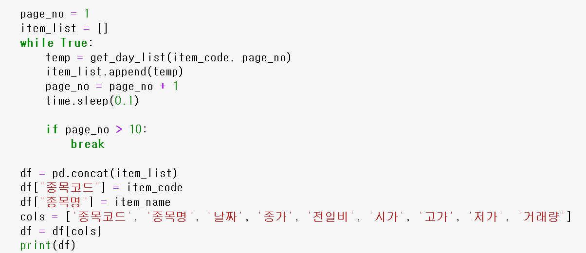 get_day_list 에서 결과가 데이터프레임으로 나오는지 확인해 보세요.