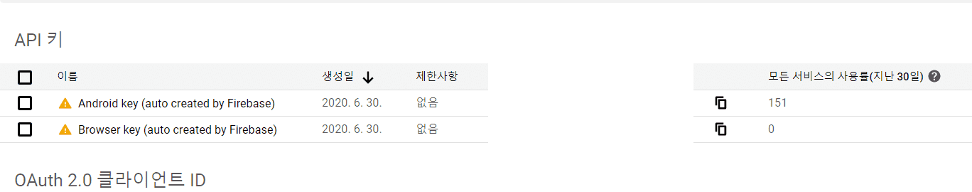 아마 구글에서 서버키를 제거 한듯 합니다. 그럼 Credentials 상단에 Create Credentials 클릭 후 API Key를 생성해주어서 사용하시면 됩니다.