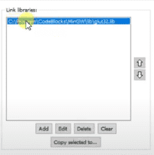 상단의 Settings 메뉴 > Compiler > Linker Settings 를 보았을 때,