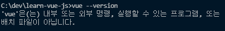 그리고 vue --version을 입력하면 vue 명령어를 인식하지 못합니다.