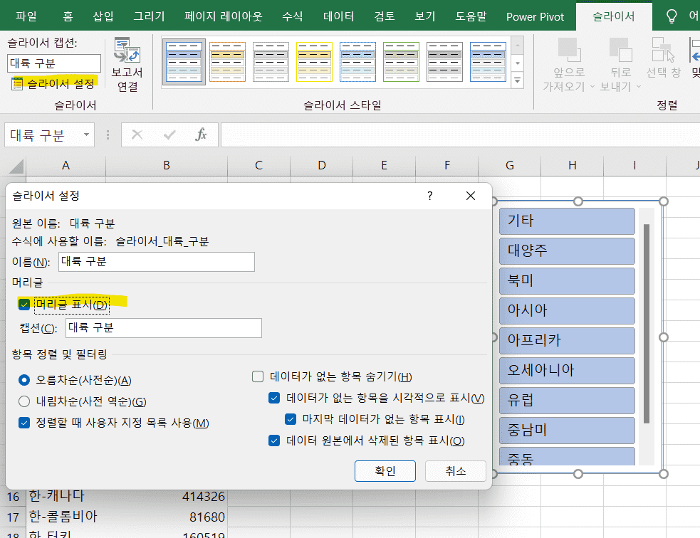 머리글 표시를 선택하였는데도 다중선택 아이콘이 생성되지 않습니다.