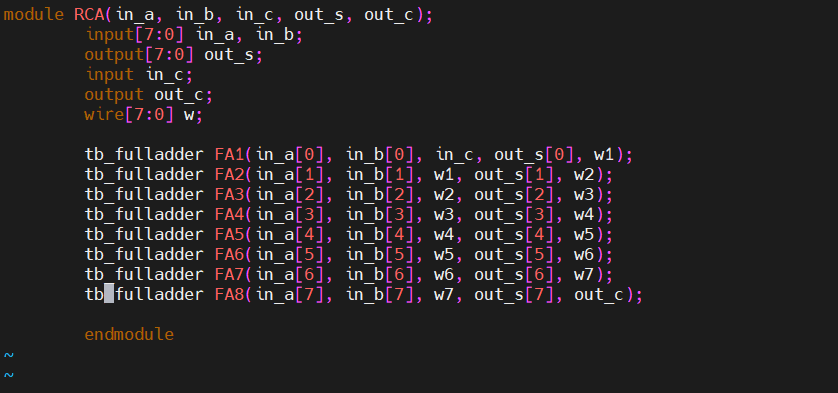 쿼터스에서는 verilog 작성시 full_adder와 RCA를 한 페이지에 전부 기술을 하였지만
