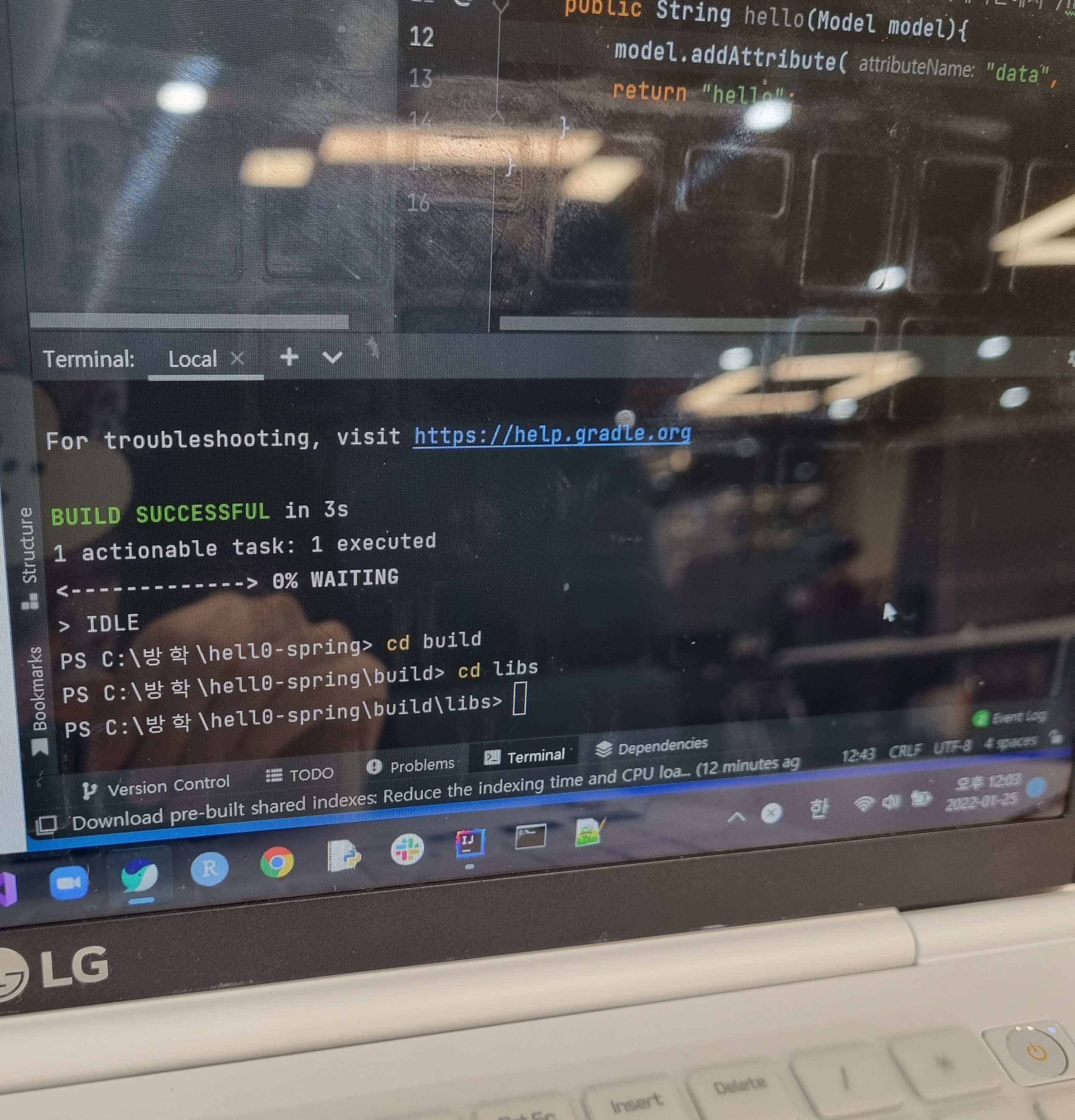 인텔리제이 터미널에서 빌드는 되는데 그 이후 스프링 메시지는 뜨지 않습니다