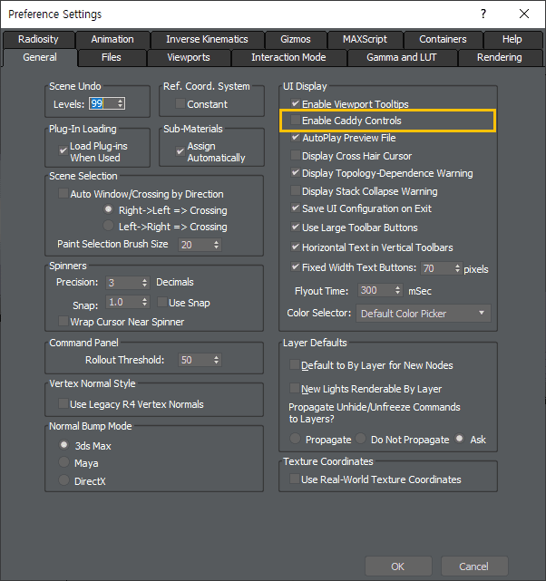 Enable caddy Control을 체크 해제해주세요.. (예전 옵션창이 보기 편합니다.)