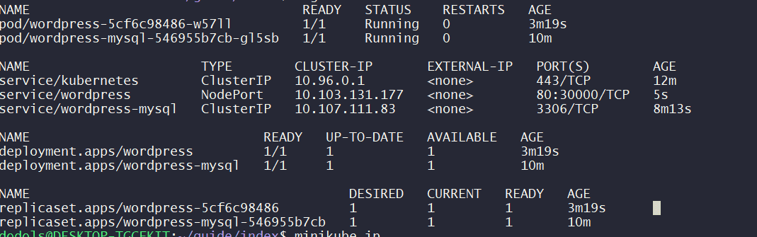 minikube service wordpress