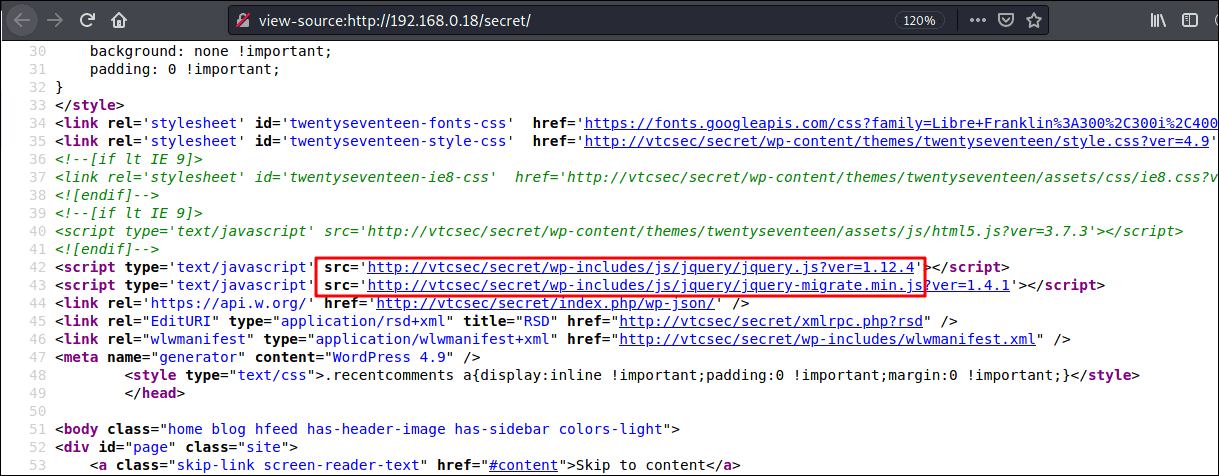 다만, hosts 파일을 수정해야만 정상적인 렌더링이 되는 이유는 아래 사진과 같이 소스코드에서 Javascript 또는 CSS 파일 등을 vtcsec 호스트 이름으로 지정되어 있기 때문입니다.
