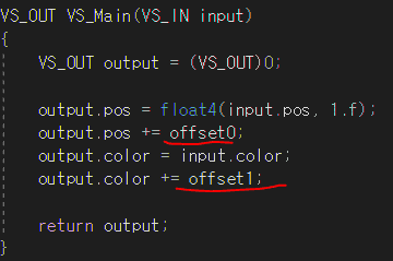 쉐이더 코드를 보면 offset0이 위치라서 걔만 세팅해주면 위치가 바뀝니다.
