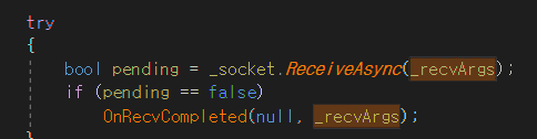 윗 부분 (ReceiveAsync)이 가장 의심되고