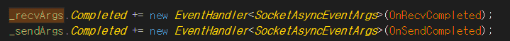recvArgs가 OnRecvCompleted를 연결하는 과정에서 Session의 참조값을 들고 있어서