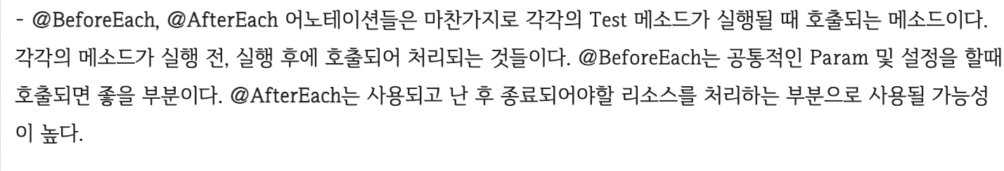 @AfterEach 에서 사용되고 난 후의 리소스를 처리하는 것은 이해했습니다.