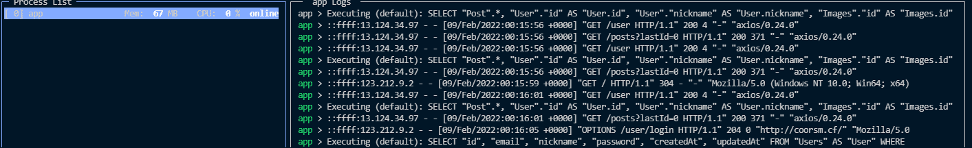 sudo npx pm2 monit 화면 질문