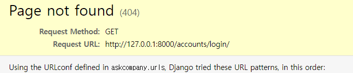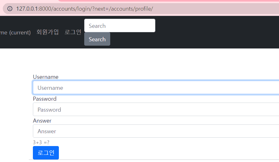 링크를 보시면 account/profile로 이동을 하였지만 admin계정이 로그인이 되어 있지 않아서 다시 위와 같은 창이 뜹니다.