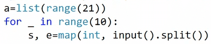 "총 10개의 줄에 걸쳐 한 줄에 하나씩 10개의 구간이 주어진다."