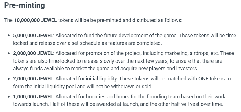 4. 1,000,000 JEWEL은 창립 팀의 보상으로 절반은 출시 직후, 나머지 절반은 시간이 지남에 따라 서서히 월급 개념으로 받을 수 있는 비용을 이야기합니다.