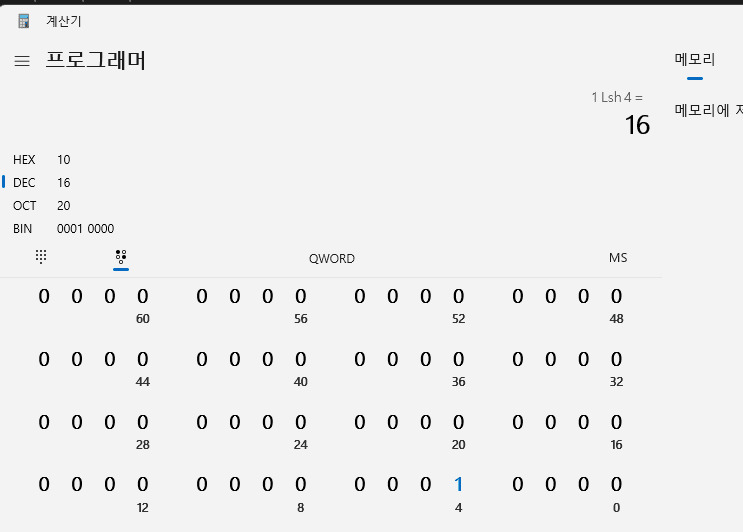 ex) 1 << 5를 하면