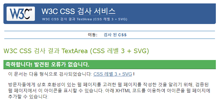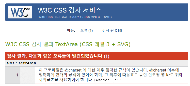 하지만 @charset 'utf-8'; 로 적으시면 CSS Validation Service에서 오류로 체크됩니다.