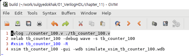 chapter_11 파일을 build를 하면, counter_100.v 와 tb_counter_100.v가 서로 독립된 파일임에도 불구하고 마치 하나의 파일인 것처럼 실행됩니다. 무슨 원리인가요? build 라는 shell script의 기능인가요?
