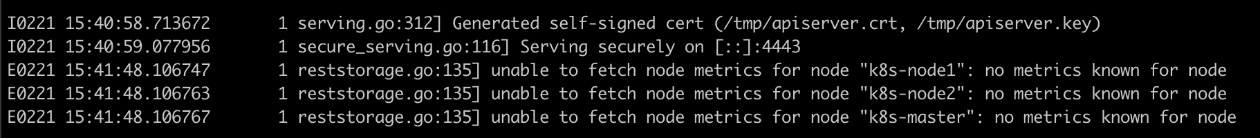 E0220 09:04:23.330580 1 reststorage.go:135] unable to fetch node metrics for node "k8s-node1": no metrics known for node