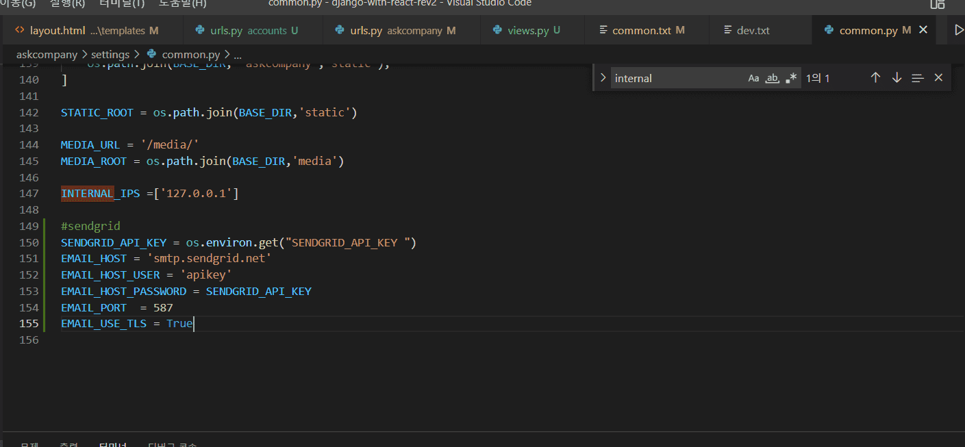 음.. key 값도 sendgrid 에서 복사해서 설정해주었고,