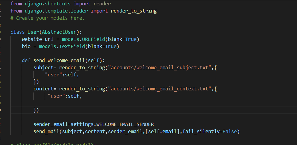 실제 파일명은 welcome_email_content.txt 이신데, 뷰 코드에서 지정하신 파일명은 welcome_email_context.txt 이십니다. 파일명이 다른 듯 하네요. :-)