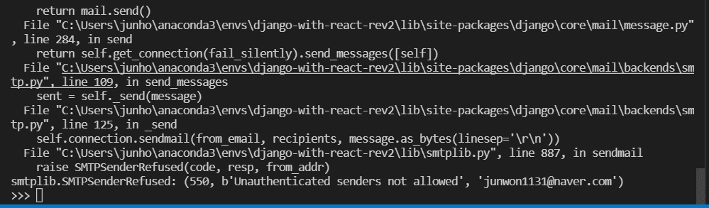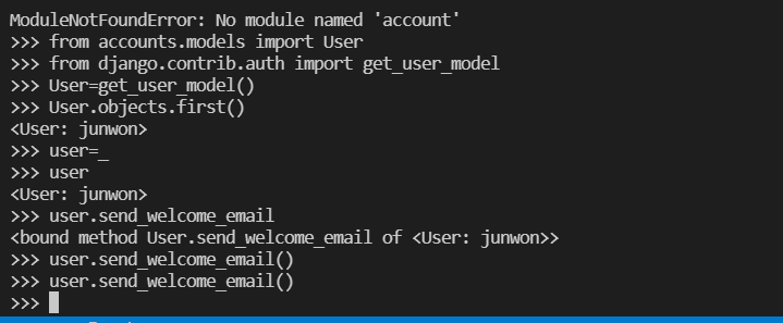 signup 뷰에서 form.save() 에서 데이터베이스에 저장을 하기 때문에, 그 이후의 signed_user.send_welcome_email() 코드에서 오류가 발생하더라도 이미 데이터베이스에 저장이 된 상황입니다.