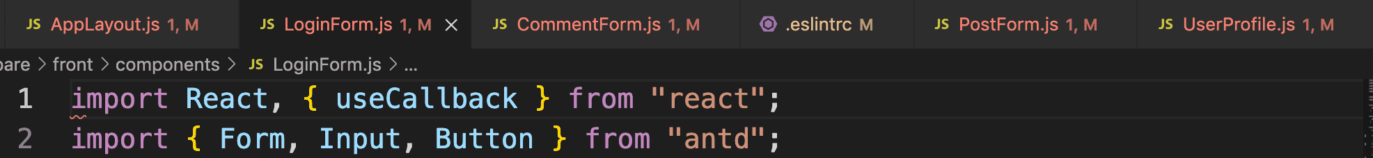 현재 에디터에 eslint 적용이 제대로 안 되신 것 같습니다. 근데 eslint가 강좌 진행에 필수적인 건 아닙니다. 나중에 실무가서는 쓰시게 되겠지만요.