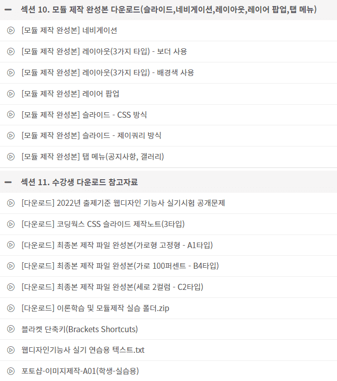 아래 섹션에서 연습하실 파일과 최종본 제작을 할 모든 소스파일이 있습니다.