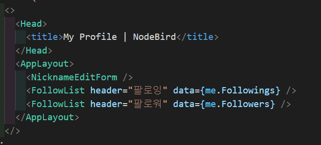 리액트는 무조건 부모가 하나여야 돼서 Head와 AppLayout 두 개가 자식인 경우는 가상의 <></>로 묶어주어야 합니다.