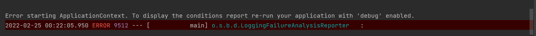 실행을 해보니 위와 같이 요류가 나서 실행이 안되어서 application.properties 에logging.level.org.springframework= debug logging.level.org.springframework.web= debug