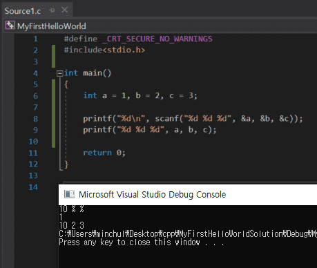 참고로, scanf는 성공적으로 입력받은 값의 수를 리턴합니다.