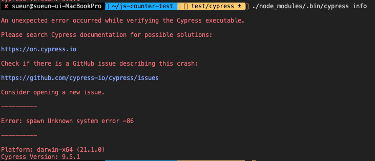 실행시 안되는 이슈가 있습니다. (Error: spawn Unknown system error -86)