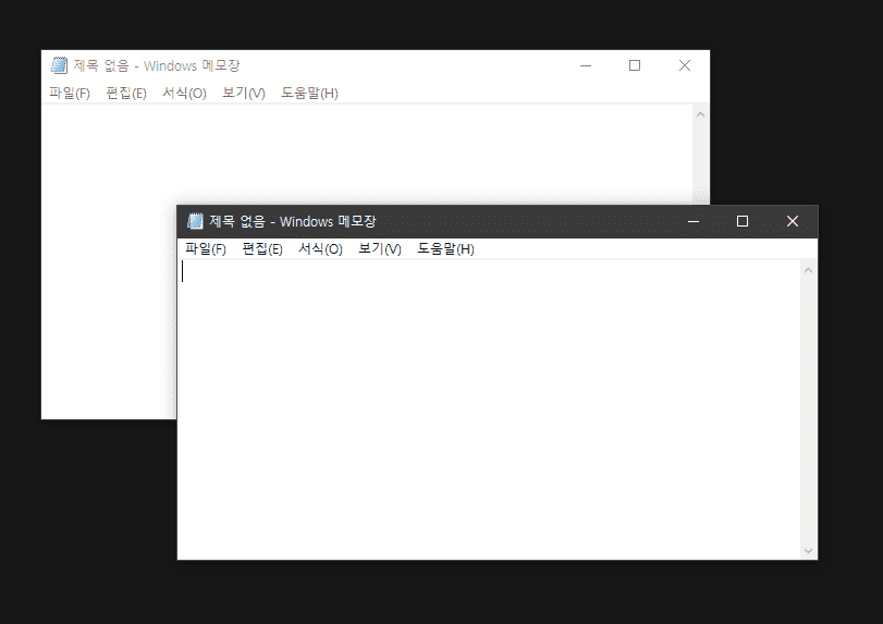 쉽게 예를 들면 위의 이미지에서 메모장 2개가 있는데 앞의 창이 focus 를갖고 있고 뒤의 창은 focus를 잃고 있다고 볼 수 있습니다. 그것과 같은 개념이라고 보시면 됩니다. 위 코드에서 focus() 를 빼고 테스트 해보시면 바로 아실수 있습니다.