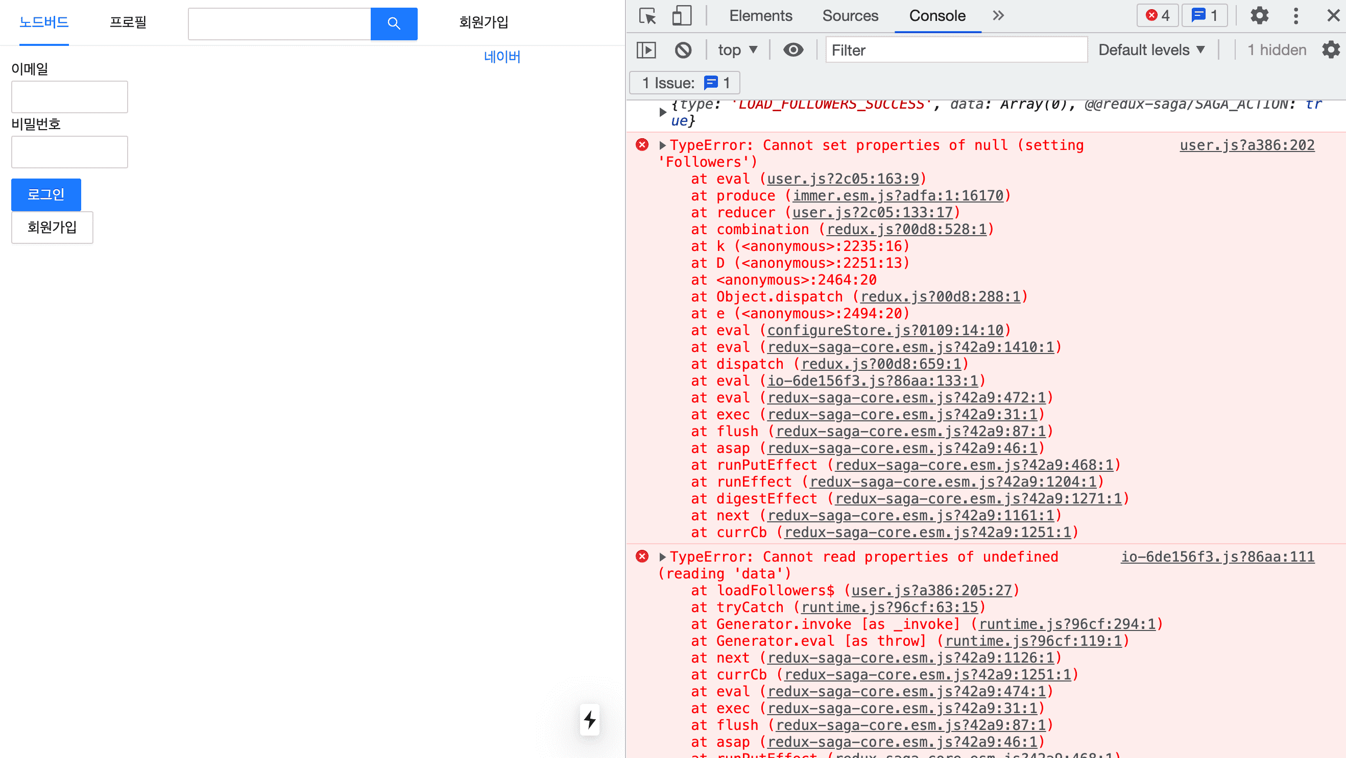 다른 분들의 질문글에서 저와 같은 에러 내용을 봤지만 여전히 해결이 안되서 질문드립니다. 프로필 페이지인 상태에서 새로고침을 하면 로그인이 풀리고 에러가 발생합니다, 그래서 답변대로 프로필 페이지에도 LOAD_USER_REAUEST 액션을 넣어 로그인 정보를 불러왔는데 해결이 안되고 me?.Followings 도 적용해봤는데 에러가 사라지지 않네요