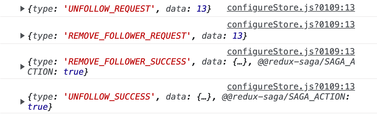 팔로잉을 제거할 때 REMOVE_FOLLOWER_REQUEST 액션까지 같이 디스패치 되서 팔로잉만 사라지는게 아니라 팔로워까지 같이 제거가 되네요,, 분명 밑에처럼 작성했는데 왜이럴까요??