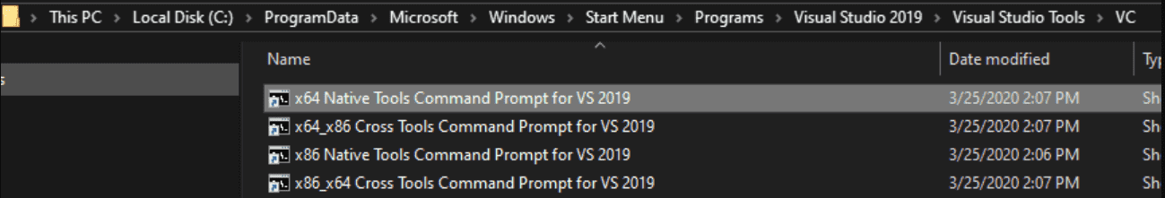 x64 native tools command Prompt for VS 가 나오지 않습니다