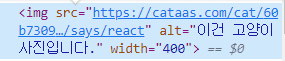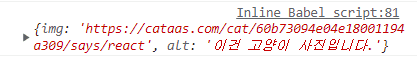 이때 console.log(props)를 했을 때 {img: 주소, alt: "이건 고양이입니다"}가 나왔습니다.