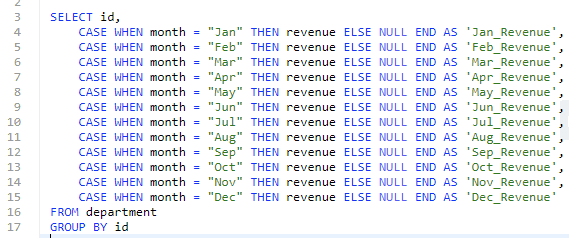 그럼 여기서 NULL 밑줄치신 부분은 첫번째 값인 id=1, month='jan'에 해당되는 부분의 march 값이 NULL이여서 NULL로 출력되는게 맞나요?