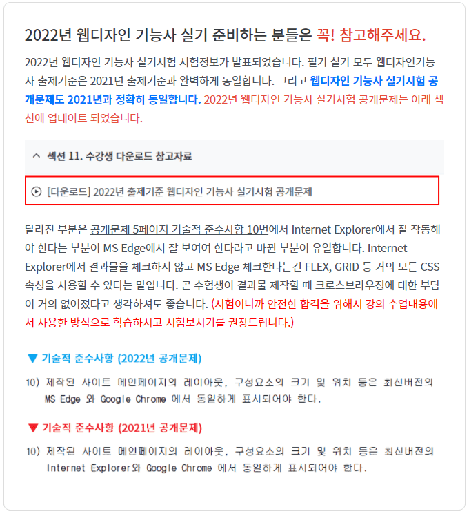 그리고 올해부터 웹디자인 기능사 실기 크로스브라우징을 Internet Explorer로 하지 않습니다.