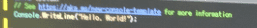 using System; namespace MyApp // Note: actual namespace depends on the project name. { internal class Program { static void Main(string[] args) { Console.WriteLine("Hello World!"); } } }