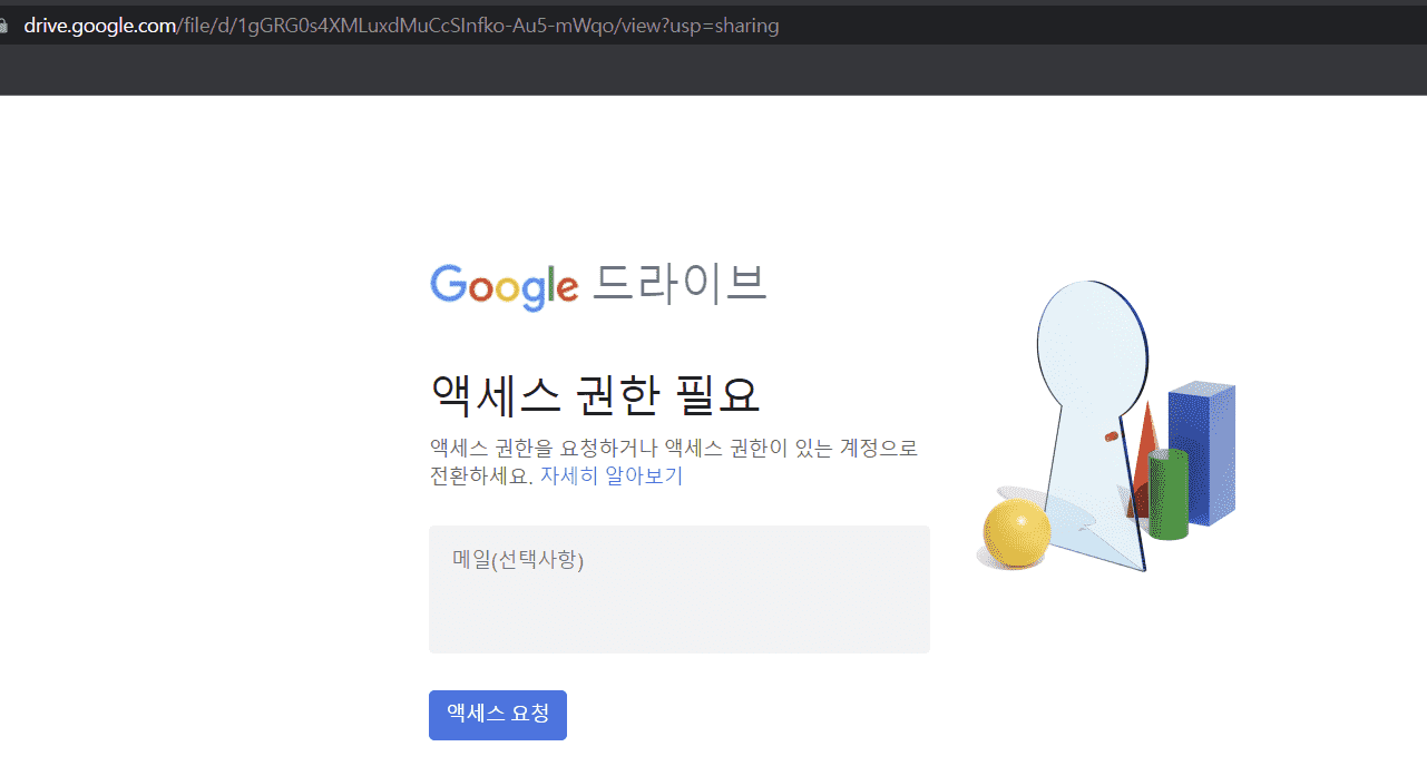 자주하는 질문에서 업로드 내용을 다시 참고해서 액세스 권한이 출력되지 않도록 링크있는 사용자 공개 설정을 해주세요,