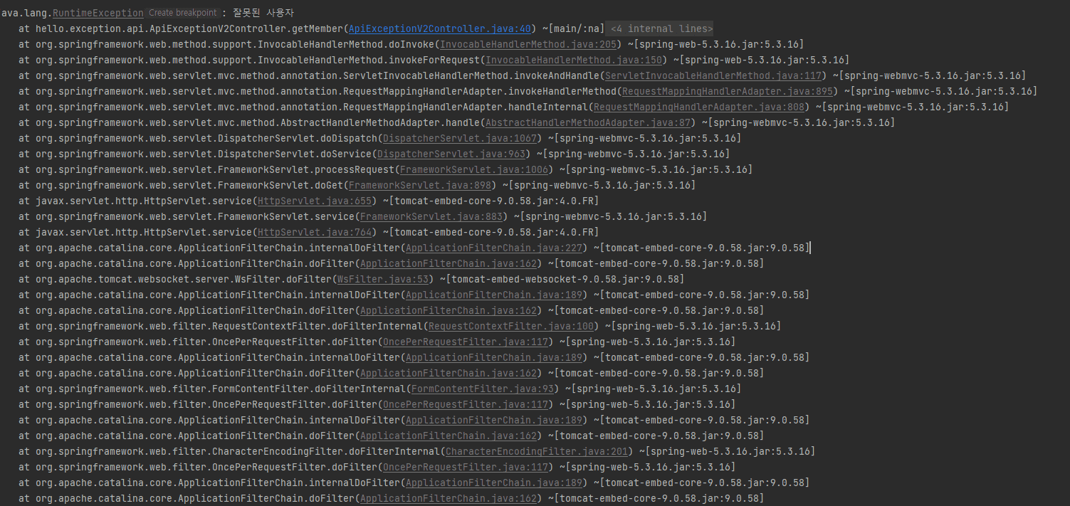 이렇게 서블릿, 필터 에러 로그가 남는데