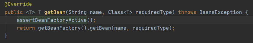 말씀하신 방법으로 확인해본 결과 getBean은 object를 반환해, 객체 하나만 반환한다는 것을 알게 됐고 '<T>라는 제네릭'으로 검색해 객체 생성 후 사용 시 선택하는 제네릭에 따라 자동으로 같이 선택된다는 것을 알게됐습니다. 고맙습니다.