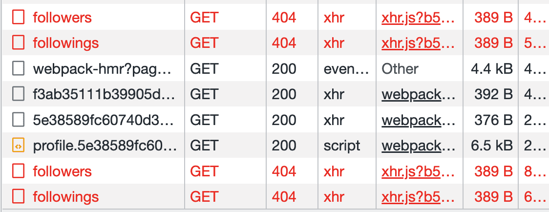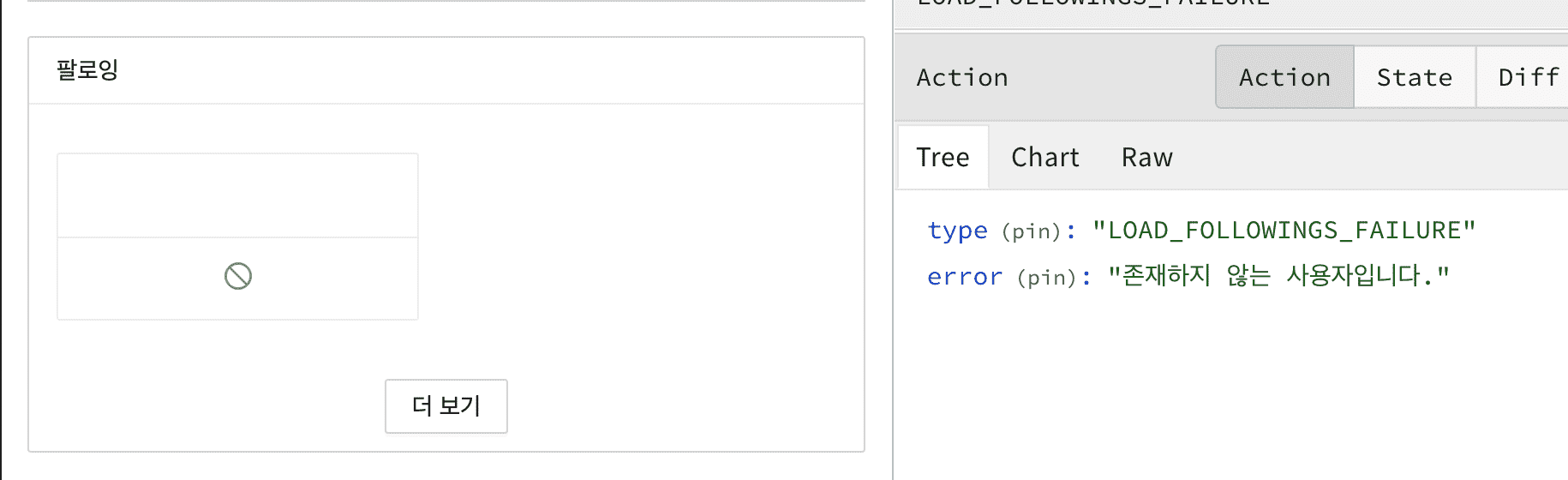 그런데 저 에러문구는 분명 이전 강의에서 다른 사용자의 정보를 불러오는 수업때 작성한 loadUser(GET/user/1) 라우터의 에러문구인데 왜 뜬금없이 GET/user/follower 혹은 GET/user/followings 요청을 했을 때 저 에러가 나오는 건지 모르겠네요 ㅠ profile.js 에서 LOAD_USER_REQUEST 를 디스패치 하지도 않았고 네트워크로 확인해봐도 follower, followings 만 요청했다고 나와있네요