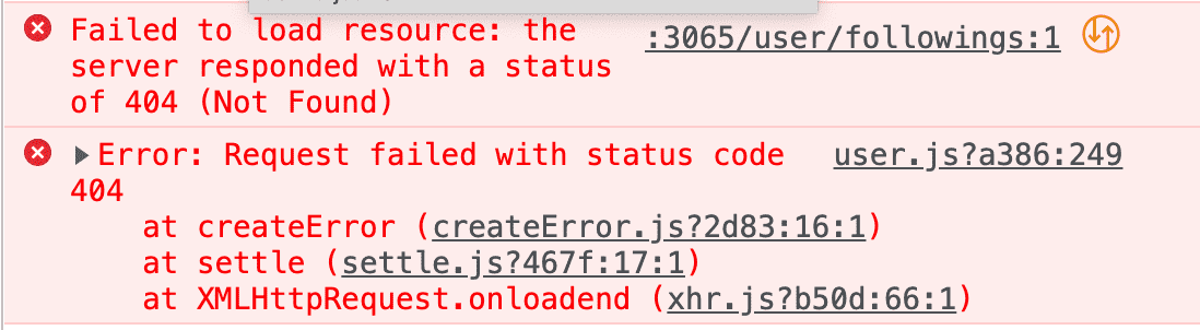 404 에러는 loadUser에 전용 에러가 아닙니다. 무엇이든 잘못된 백엔드 서버 주소로 요청을 보내면 발생합니다.
