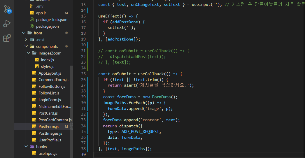 PostForm.js 코드 올립니다 확인해주세요! 게시글을 달아도 요청만 가고, 댓글도 그렇구요, 이제는 닉네임도 요청만 가네요.